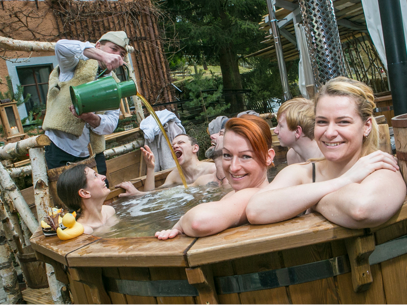 Genießen Sie die wohltuende Wärme bei einem Besuch in der Panoramasauna. Von hier oben haben Sie das Treiben im Mühlenhof im Blick. Oder wagen Sie den Sprung in die beheizten Badezuber. Regelmäßig lädt der Bademeister zum Bierbadetag. Den Tag können Sie bei ausgewählten Ritualen und Veranstaltungshighlights wie Reisevorträge, Konzerte oder Klangmeditationen, ausklingen lassen. In außergewöhnlichen Apartments und Hotelzimmern, in urigen Pensionen und Ferienwohnungen finden Sie erholsamen Schlaf. Am nächsten Morgen starten Sie zum Winter-Wandern mit einem reichhaltigen Bio-Langschläferfrühstück entspannt in einen neuen Tag.